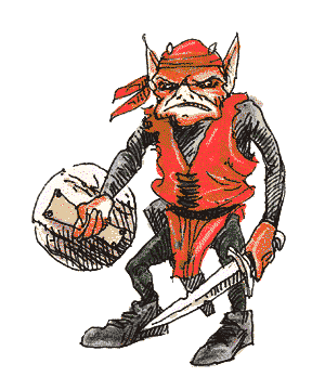 Goblin tactics and strategies are simple and crude, They are cowardly and prefer to ambush their foes, rather than face them directly. Goblins hate the sunlight, but are well adapted to operating underground and in the dark. They prefer simple weapons, like spears and maces, and are known to carry short swords as backup weapons. goblin warriors are usually armored in leather, though leaders may wear chain or even plate mail.[4]